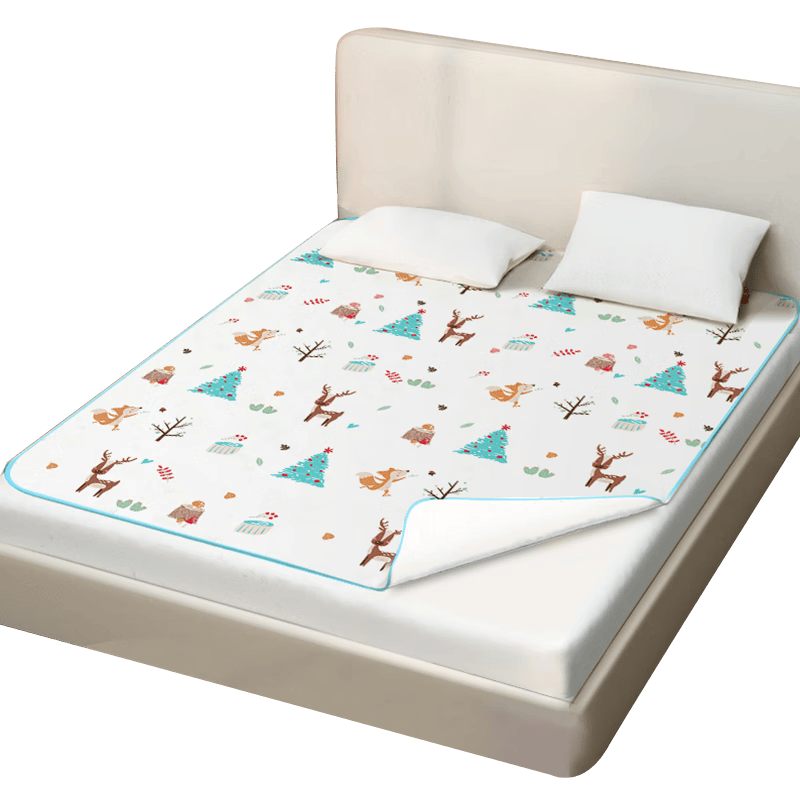 这款超大号的隔尿垫尺度为120*200,很合适宝宝的日常运用,供给了满足的空间,让宝宝在睡觉或游玩时都能纵情享用自在。它的蓝鹿图画规划,不只心爱,还能为宝宝的房间增加一抹温馨的颜色。